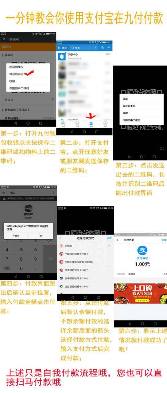 野马财经通过多方了解,发现有一家名为“九付钱包”的互联网金融公司正在开展此项业务。小编亲身实验了整个套现过程,果然像知情人士所说,可以实现快速套现。通过九付钱包工作人员的指导,野马财经仅用了2分钟就用信用卡完成了整个套现的操作,下图为九付钱包工作人员所发教程图: