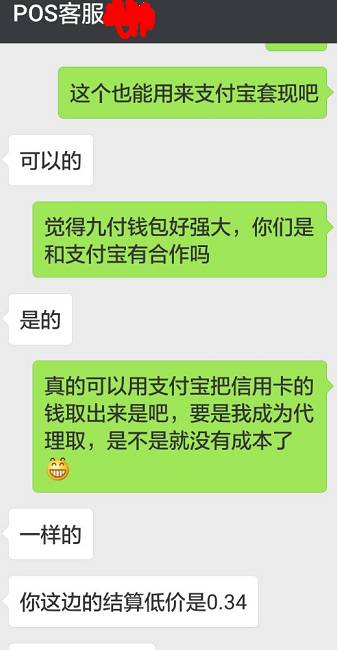 对于九付钱包所说与支付宝合作的情况,野马财经也向支付宝进行了核实,支付宝表示“需要查询”,其工作人员向野马财经介绍了支付宝防套现的措施。