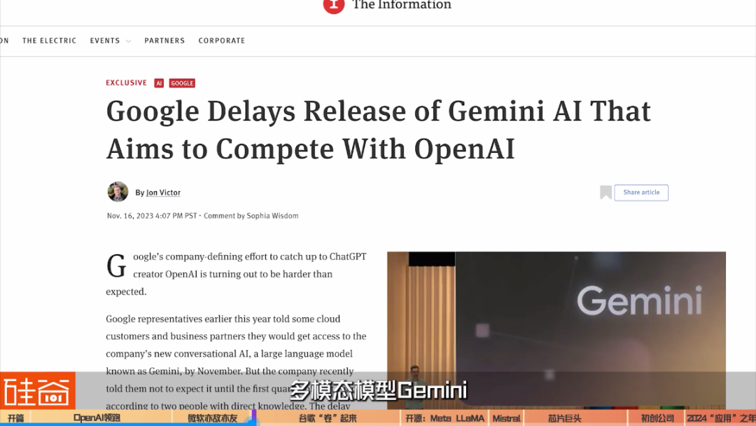 而谷歌在年底狂发模型这一点也很有意思,谷歌的新品发布时间大多集中在每年的5月到6月,过去几乎没有在年底的时间段发布过重要产品。而业内有分析认为:这次破例意味着谷歌的管理层担心OpenAI的ChatGPT、微软的Copilot以及其它快速发布迭代的产品正在成为AI领域的代表,谷歌必须加速前进。