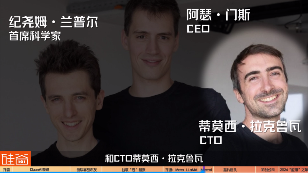 同时,人工智能的开源社区也在迎来更多的大语言模型。这包括Mistral AI,这是一家位于法国的AI初创企业,2023年5月才成立。之后成立7个月就成功完成两轮融资共计4.15亿美元,跨入独角兽行列,如今估值20亿美元。创始人包括CEO 阿瑟·门斯(Arthur Mensch)、首席科学家纪尧姆·兰普尔(Guillaume Lample)和CTO蒂莫西·拉克鲁瓦(Timothée Lacroix)。