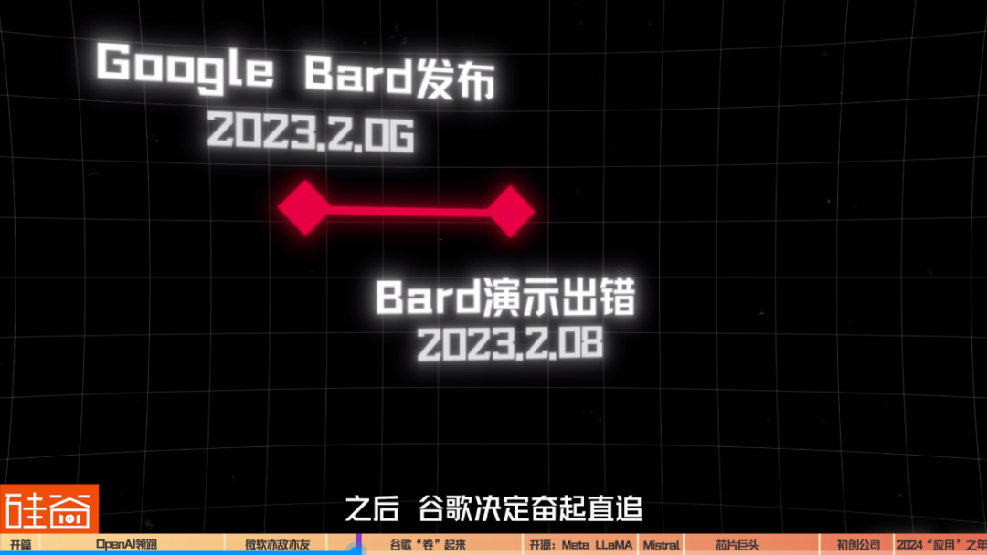 2月8日,Google举行Bard的新闻发布会,然而,在当天的发布的宣传视频上却犯了错,直接在一个天文问题上给出了错误的答案,市场认为,谷歌在恐慌中将Bard推向市场,一夜之间市值蒸发超过千亿美元。