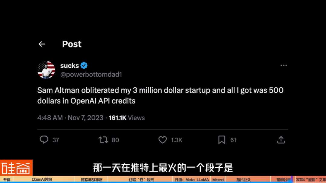 2023年11月6日OpenAI举行开发者大会,那一天最火的一个段子是:
