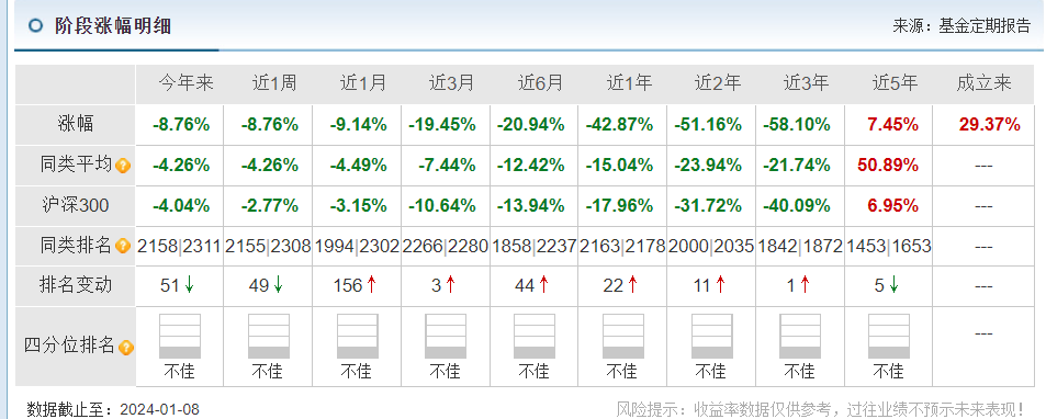 不过,混合型产品2023年业绩下降较为严重,有8只产品近一年收益率下降超过30%,其中跌幅最高的是华安沪港深机会灵活配置混合,近一年业绩下降42.87%,而同类平均为-12.42%。从各阶段的业绩排名看,该产品均被提示为”不佳“。