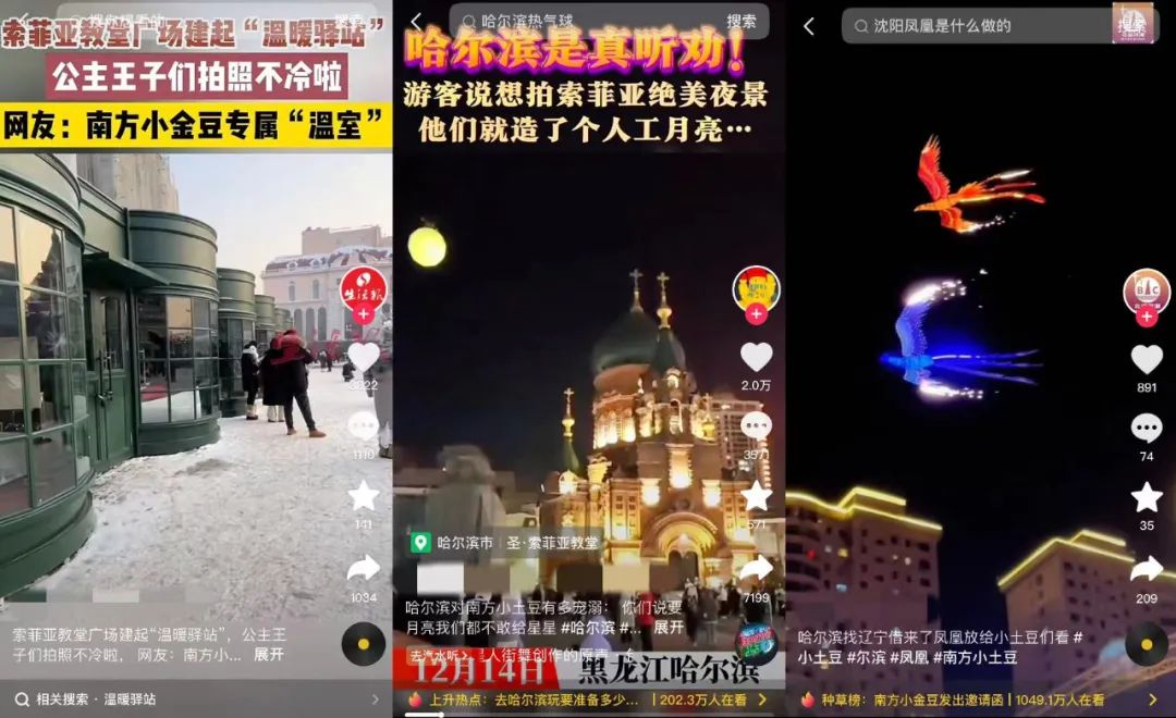 之后,哈尔滨推出地铁摆渡票,乘客可以免费乘坐地铁往返冰雪大世界和太阳岛雪博会景点;路边搭建温暖驿站,为南方游客御寒;在索菲亚大教堂搭建人造月亮,满足游客拍照需求;还从沈阳借凤凰,鹤岗借丹顶鹤,请鄂伦春族人“下山”……哈尔滨一系列举措都博得外地游客的好感,也让东三省人民表示:“尔滨,你让我陌生。”