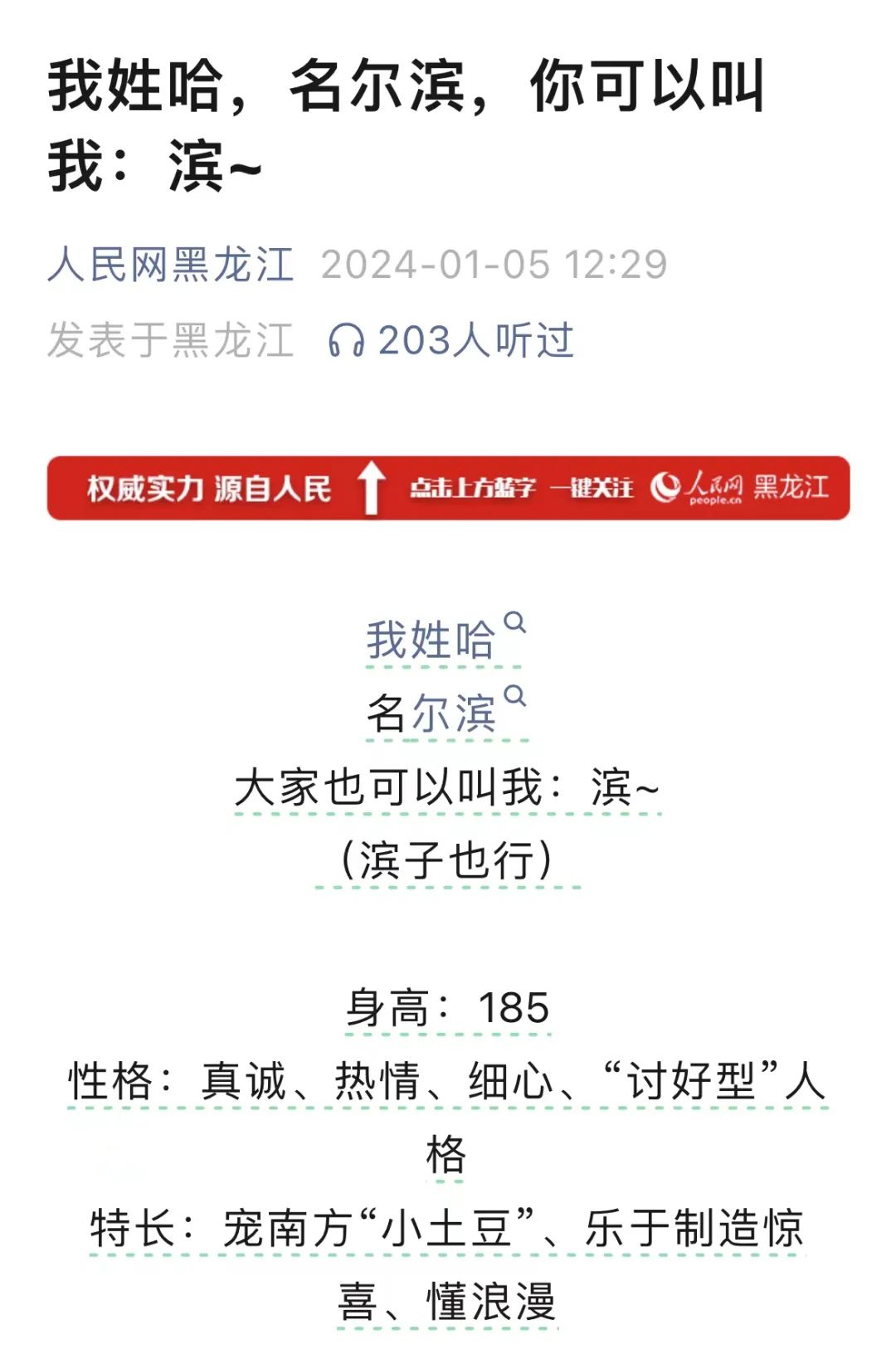 不到一周,网友对哈尔滨的称呼已经从“尔滨”变成了“滨”,哈尔滨对南方游客的昵称从“南方小土豆”变成了“马铃薯公主”。热梗的快速更替,显示了互联网对这座城市的集中关注。
