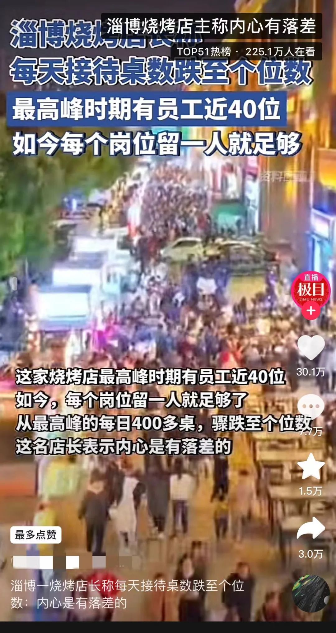 就像淄博烧烤热催生了当地不少烧烤店开张,但是如今热度冷却,盛宴之后,留下的可能是一片狼藉。城市本身的发展牵动的不单是一个景点的兴衰,背后更多是一个行业的健康发展,以及一群当地人的生存未来。