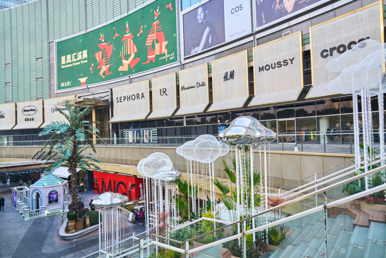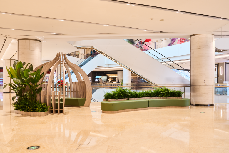 为让世纪汇广场成为消费者更有归属感与认同感的栖息地,场内公共空间也已完成升级。一方面,关注到当下消费者对自然氛围的需求,世纪汇广场深度融合购物场景与自然景观,于场内提供三大社交可持续的公区场景,包括LG1 露天广场大阶梯上的“云合阶”、L1侧厅的“自然站”以及位于L1的“绿洲亭”。