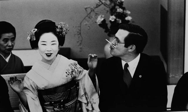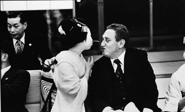 席间,这些艺伎和福特、基辛格等人玩起了“接稻草”的游戏,用嘴鼻夹稻草相互传送,逗得大家哈哈大笑。
