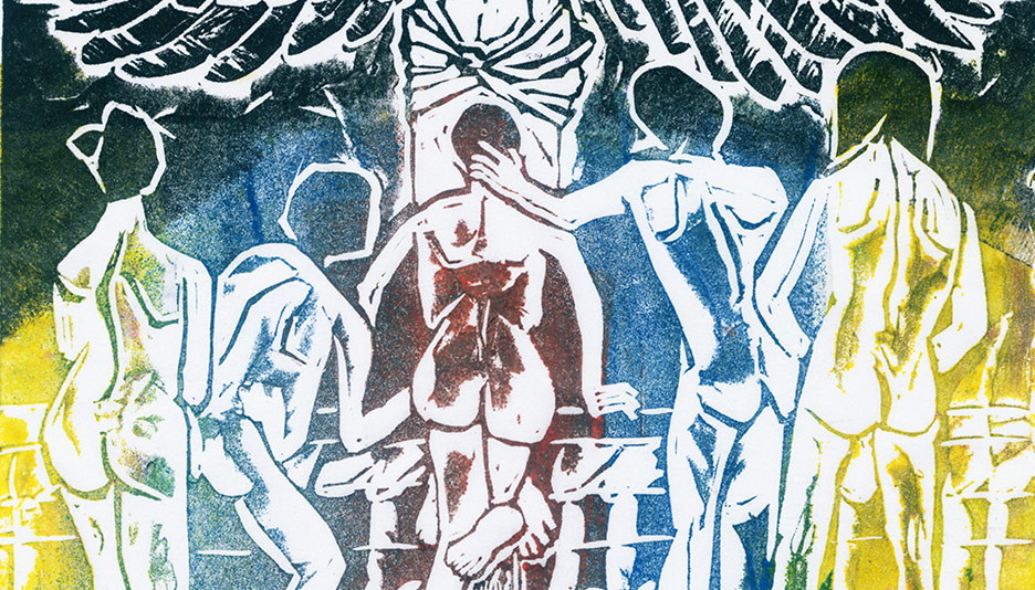 题图:胶板版画《他们的膜拜方式》By 袁玮。