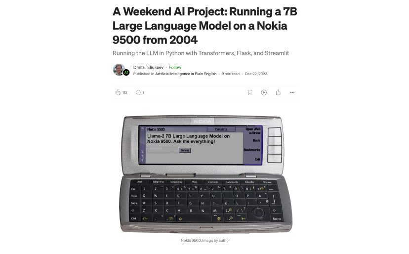 但在精简模型体积、增加运行效能的道路上还有很大的提升空间:目前开发者甚至能在 2004 年发布的诺基亚 9500 的硬件上,运行起来一个 70 亿参数大小的本地大模型。