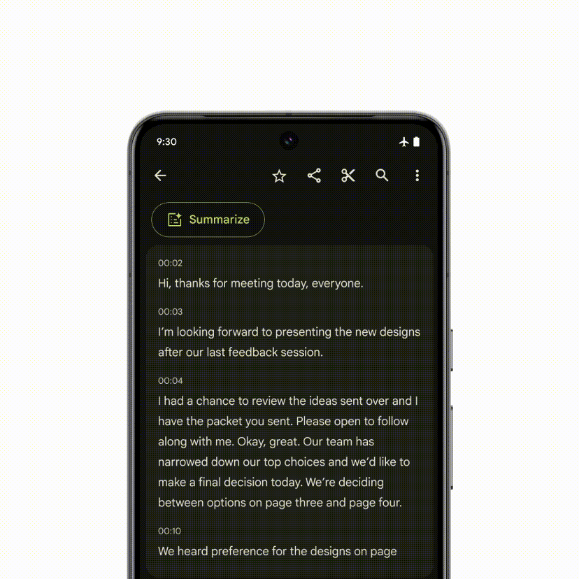 去年 11 月,Google 在首次对外公开 Gemini 时,为了更好地展示其在端侧的应用场景,在 Android 14 自带的录音机App 以及 Gboard 英文输入法都进行了整合。让录音语音转文字速度更快同时提高准确率。