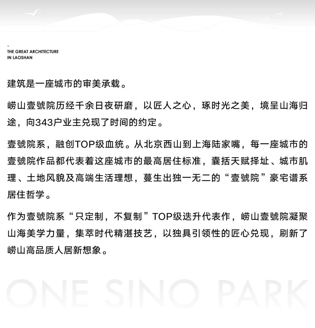 这种超越时间的兑现力,岂止惊艳整个崂山。俯仰间,流线光境,叠映万象,方寸间,皆是生活与理想的美学栖息地,开启了崂山人居“壹”时刻的新史诗。