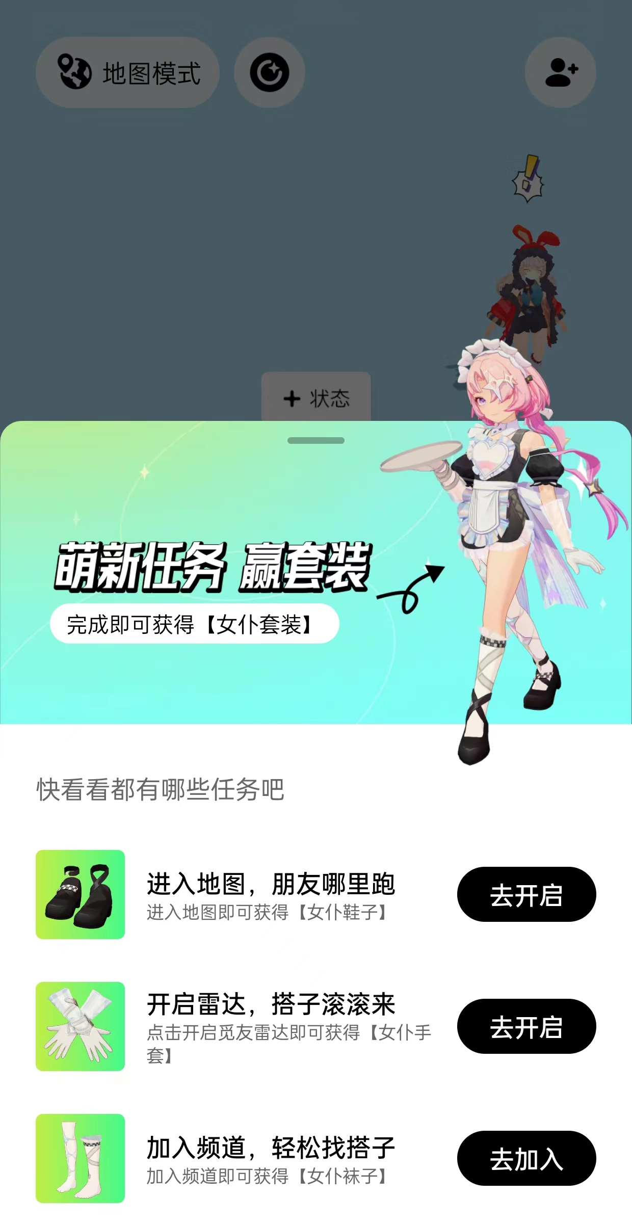 基于二次元爱好者的需求,腾讯代号M9设置了虚拟形象装扮、多人群聊、好友地图、实时状态、个性咕卡(个性签名,标记自己的兴趣爱好等)等互动玩法,试图为二次元群体打造一个纯粹好玩的社区。