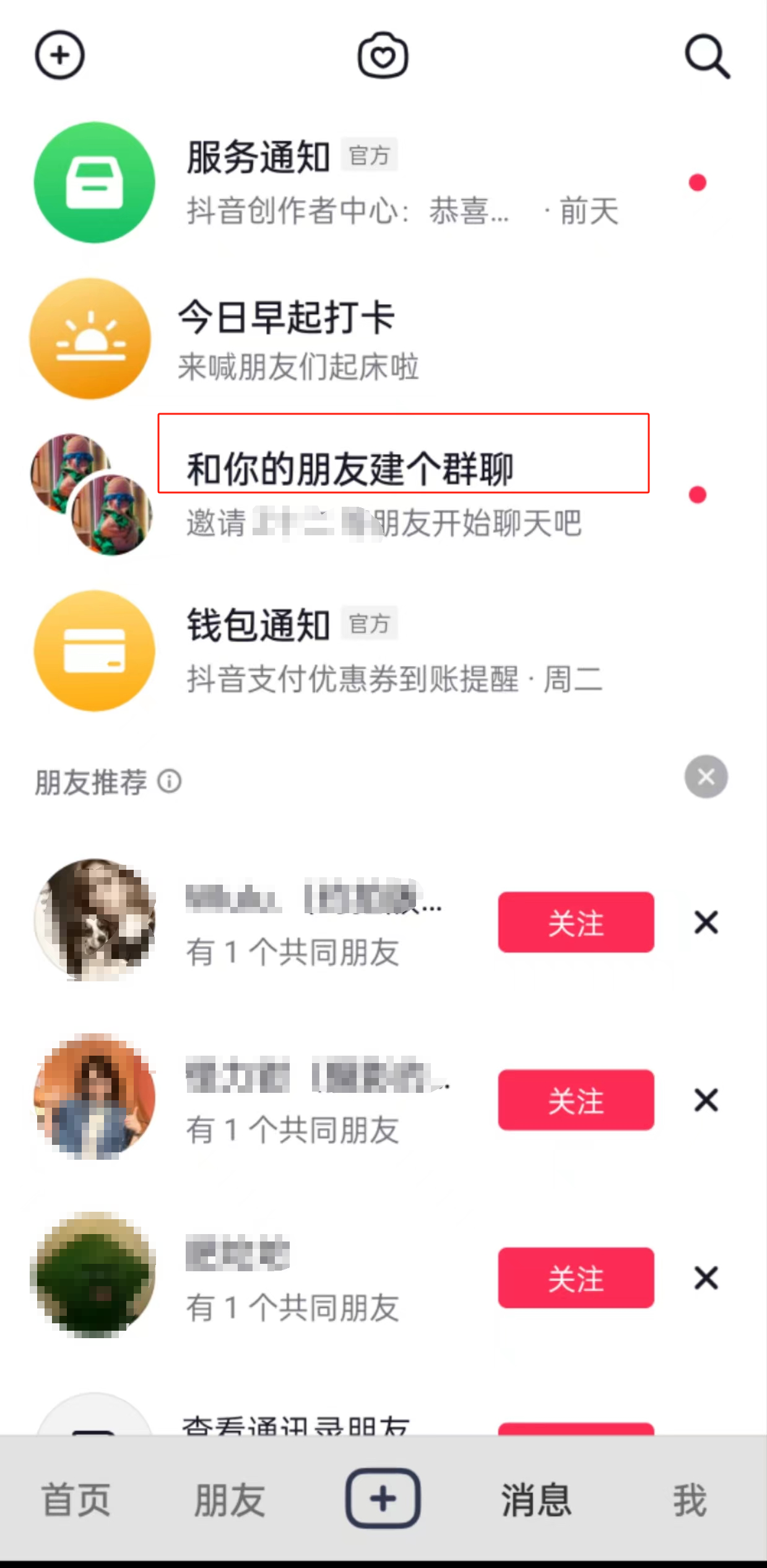 抖音聊天页面引导熟人建群社交,图/抖音APP