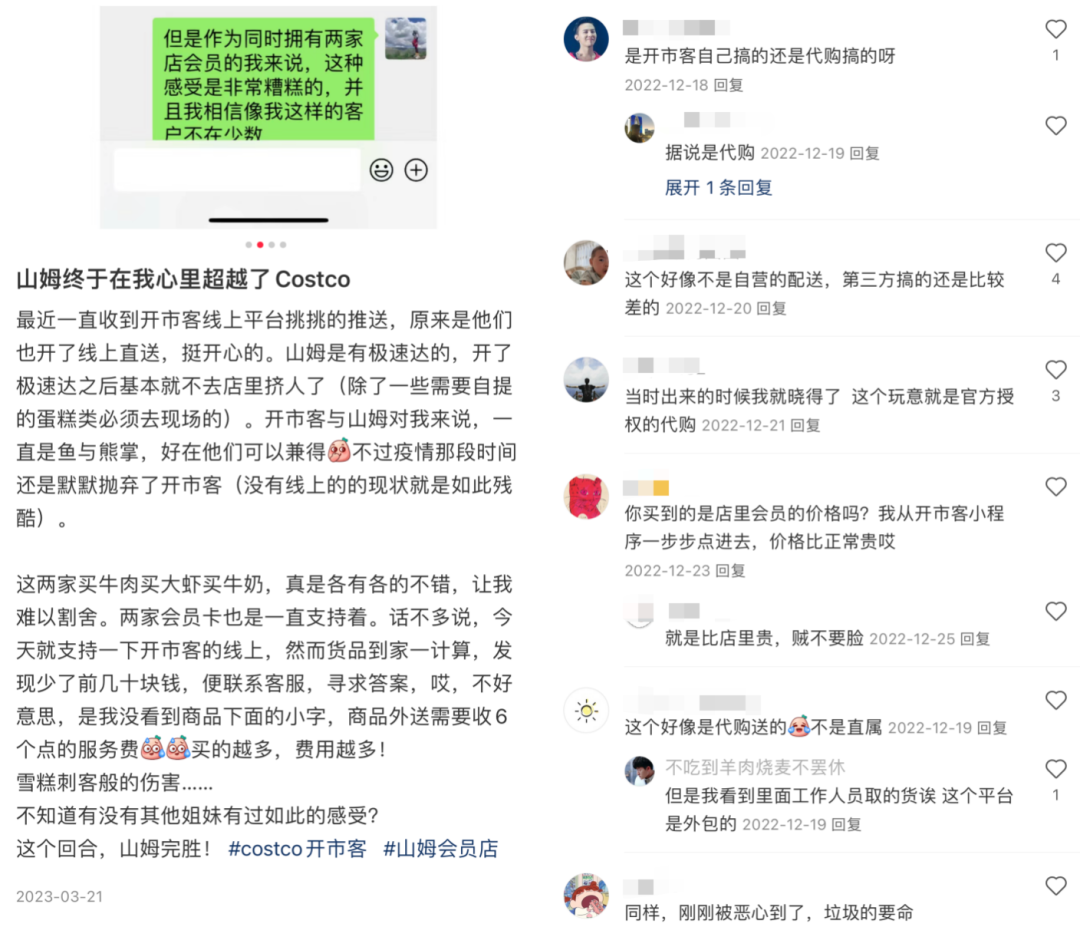 “溢价配送,这点就没有山姆做的漂亮了”“这个玩意就是官方授权的代购”“东西少、速度慢,快递发货就更难了”微博、小红书等社交平台上不乏对Costco“挑挑购物”服务的吐槽。