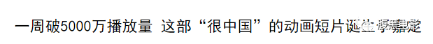 这部动画短片上映短短一周的时间播放量就突破了5000万。