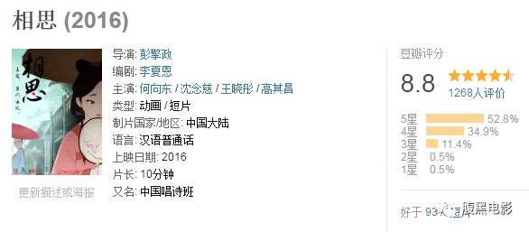 豆瓣评分8.8,好于93%短片。