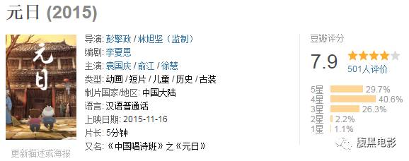 豆瓣评分7.9,这部《元日》片长更短,只有5分钟。