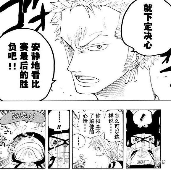 在说完让乔巴看结果的话,索隆马上认真了起来:快点开始第二回合吧!!是啊,他抱着必胜的决心!!既然接受挑战,那就遵守规则!!