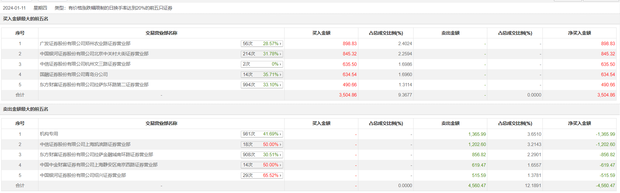 具体来看,机构合计净卖出1365.99万元。此外,知名游资现身龙虎榜,赵老哥(中国银河证券股份有限公司绍兴证券营业部)净卖出515.59万元。此外,中信证券上海凯滨路证券营业部、东方财富证券拉萨金融城南环路证券营业部分别卖出1202.60万元、856.82万元;广发证券郑州农业路证券营业部、中国银河证券北京中关村大街证券营业部分别买入898.83万元、845.32万元。