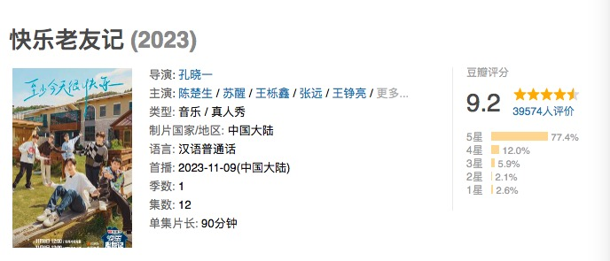 而被再就业男团推向新巅峰的“熟人综艺”,也在极力搅动综艺市场:它极致激活了内娱对综艺团体的“热情”,也丰富了综艺团体与综艺形态的碰撞。过去一年间,“院人”不仅活跃于《名侦探学院》,还带来《森林进化论》等豆瓣9分+综艺;《种地吧》衍生的“十个勤天”火速推出新团综《你好,种地少年》,豆瓣评分9.2分。