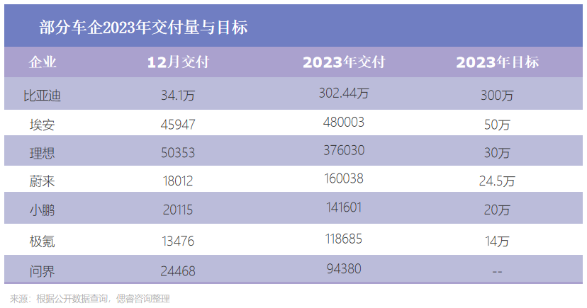 而作为造车新势力中的新兴企业——阿维塔,也没有完成2023年全年10万辆的销售目标。