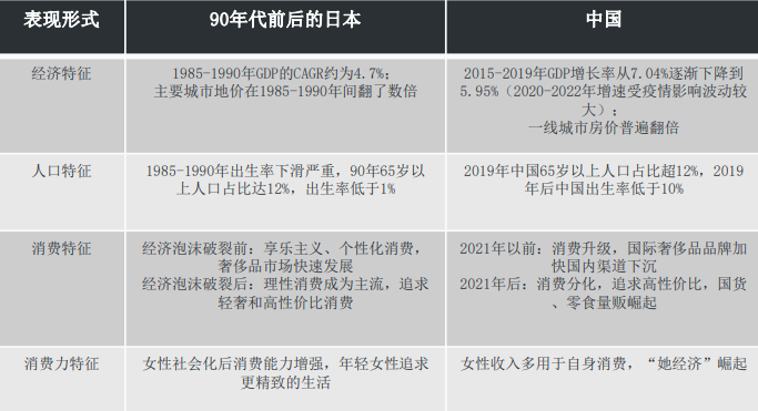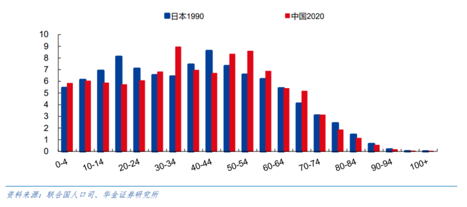对比2020年的中国与1990时期的日本,两者在人口结构、经济特征及消费表现上都存在极高的相似性。