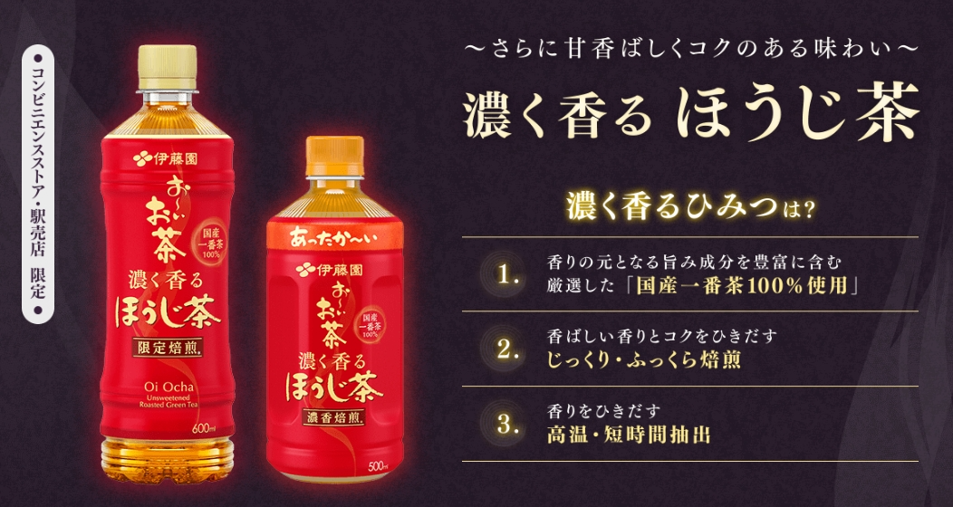 寒冷的气候,会造成人们感官敏感度的明显下降。伊藤园在2021年推出冬季限定的浓香烘焙茶,选用当年的首批茶叶经过长时间烘焙,增强香气与浓郁度。