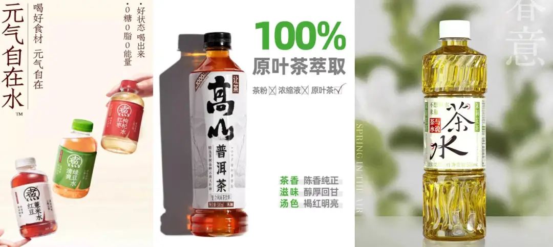 元气森林推出红豆薏米水、红枣枸杞水,让茶推出高山普洱茶,茶与水说上新茉莉花茶等等。