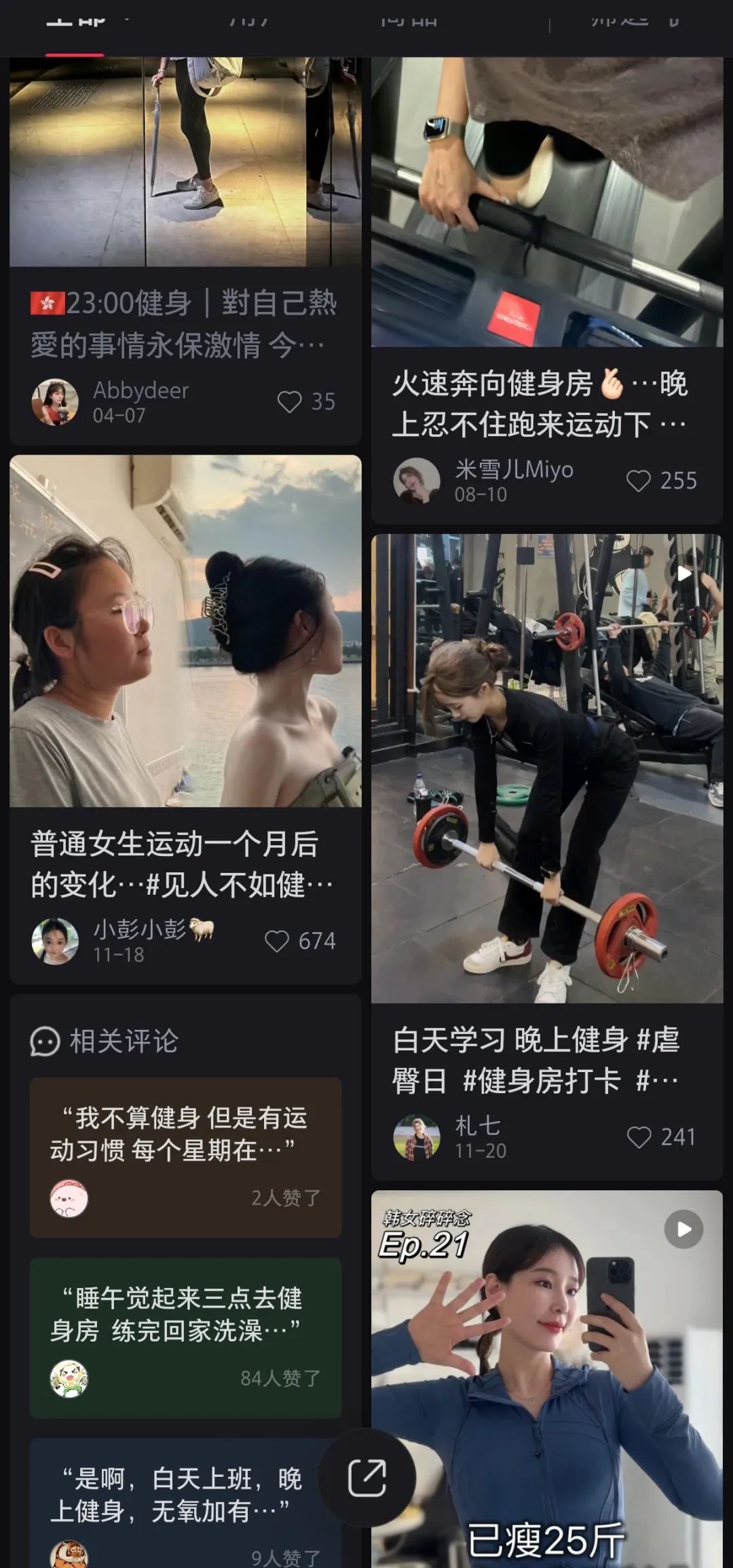 和小罗一样利用夜晚空闲时间健身的分享帖