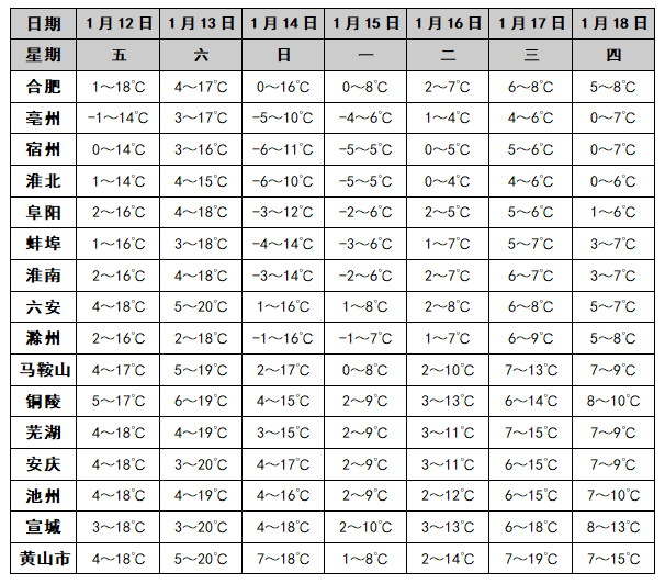 12日至13日(周五至周六):安徽全省晴到多云。