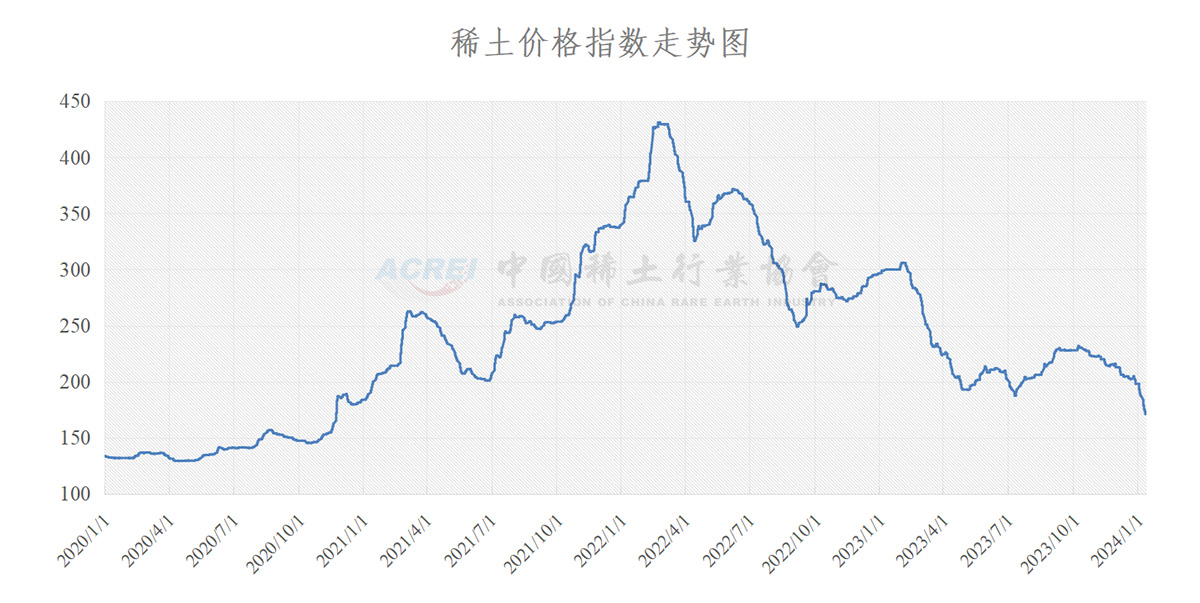 据中国稀土行业协会,1月12日,稀土价格指数报171.0,较前一日下跌2.3点。