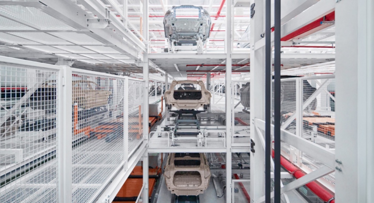 蔚来的不同工厂间通过空中运输走廊连接,这意味着轮胎、座椅等零部件生产后可以更快速度进入总装生产线,通过这种方式,单车物流成本大约可节省400元。