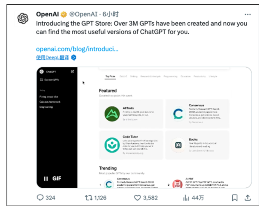 特别是OpenAI的ChatGPT,就在撰写这篇文章的过程中,它的创始人在X.com就发布了正式推出ChatGPT应用商店的消息。