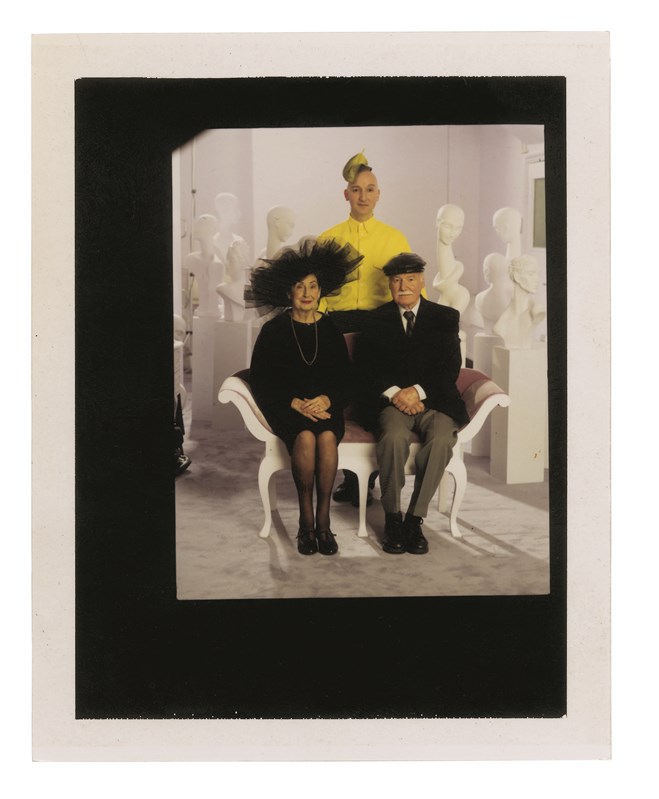 “我和她是在阿拉斯基的安克雷奇机场见到的,而且还是因为飞机晚点。在那之前我去了巴黎,有一天晚上在当地一家叫Les Bains Douches的酒吧玩,我还记得转天早晨6点我要飞东京,所以我的助理Sibylle(Sibylle de Saint Phalle,知名造型师)一直在催促我快点回去休息打包行李,后来有一群人朝我走来说很喜欢我的帽子作品,Sibylle在回去的路上和我说以后想要认识你、称赞你的人越来越多,所以下次再有这种情况你得回对方一句感谢的话。