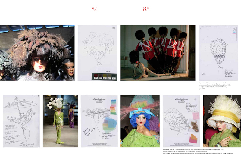 “我生平做的第一顶帽子其实是向一个制帽坊申请工作时才动手的。当时我在念大学(结束了利物浦大学的学业后,Stephen Jones前往伦敦中央圣马丁进修时装设计课程),但我不擅长缝纫。我被送去一家高级定制工作坊实习,在裁缝工作室隔壁,是制帽坊,我当时想要转去那里实习。制帽坊的一位女师傅问我做过帽子没,我说没有,她反问我没做过帽子又怎么来实习呢?事后那个周末,我用我姐姐的衬衫做了顶帽子,还在上面装点了一些塑料花朵。我小心翼翼地拿去给制帽坊的人看,因为那帽子做得并不结实,我怕散架了,结果换来了去那里工作的机会——你说当时我做的那顶帽子很美观或者工艺很精湛吗?实际上跟哪个都不挨边,它只是表现了我的决心和诚意。”