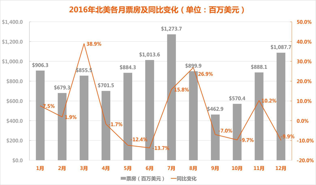 2016年北美分月票房概况: