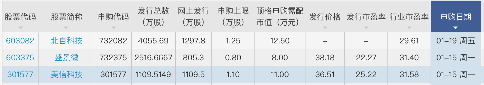 本周,新股的申购仍在继续。1月15日周一,打新者可申购两只:美信科技(301577.SZ)和盛景微(603375.SH)。