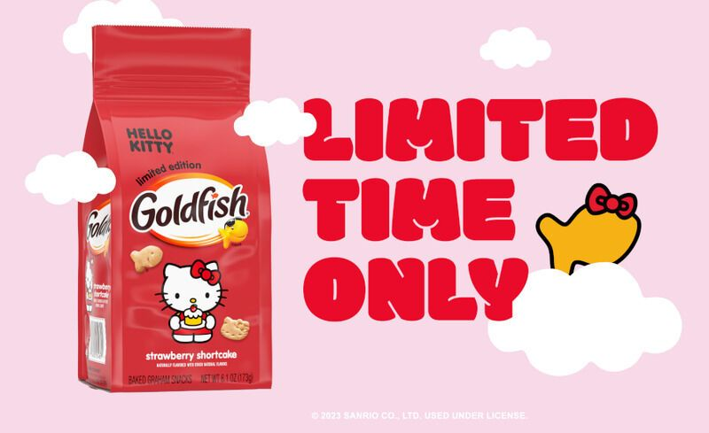 为满足消费者对草莓风味的需求,Goldfish联合三丽鸥推出限量版Goldfish Hello Kitty草莓酥饼口味全麦饼干,旨在纪念Hello Kitty诞生50周年。