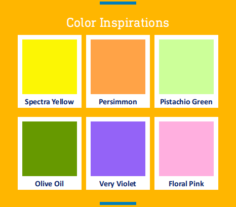 ADM最新趋势显示,大胆的红色(Bold Reds)、质朴的绿色(Earthy Greens)、饱和黄色(Saturated Yellows)、浓郁的紫色(Rich Purples)和充满活力的粉色(Vibrant Pinks )将为品牌带来更独特感觉,从而给消费者带来震撼和惊喜。