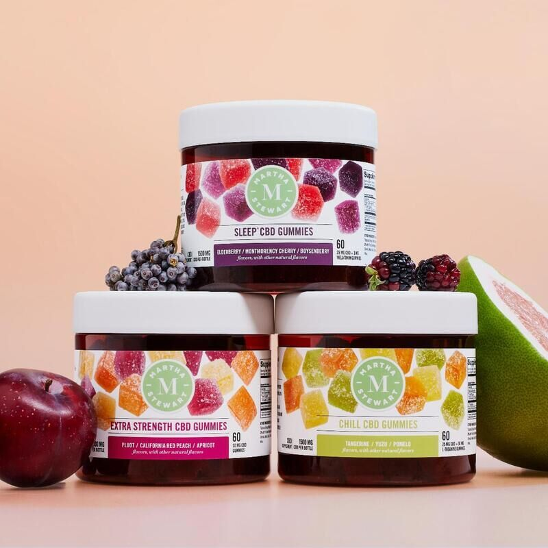 Martha Stewart CBD携手Marquee Brands和Canopy Growth Corporation,推出口味与功能兼具的CBD口香糖系列,该糖果有三种不同的口味,分别为Sleep CBD Gummies(带有蒙莫朗西樱桃、接骨木莓和boysenberry味道的浆果混合口味)、Chill CBD Gummies(橘子、柚子和柚子的柑橘混合口味)和Extra Strength CBD Gummies(pluot、杏和加州红桃的果园风味混合口味)。