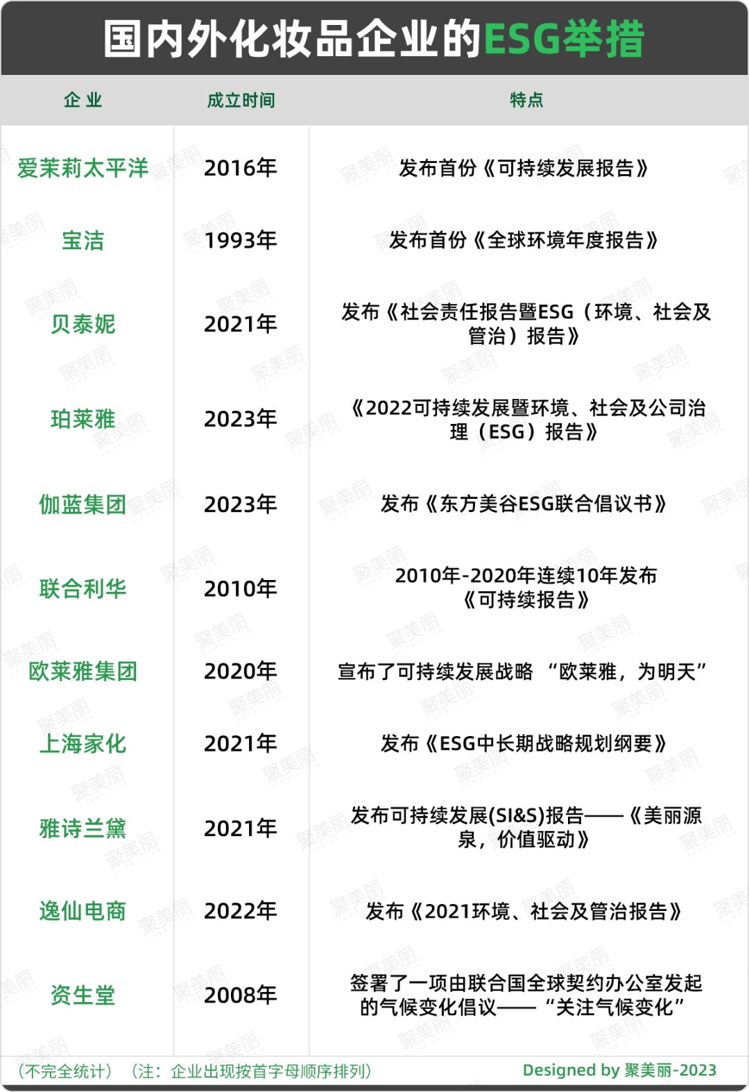 从品牌端的相关动向来看,美妆品牌多以包装、原料配方、生产能源、工艺等在可持续这件事上发力,此外,国内外美妆头部注重ESG(Environmental环境、Social社会、Governance治理的缩写,是一种关注企业环境、社会、公司治理绩效而非传统财务绩效的投资理念和企业评价标准)的建设,践行可持续发展理念,也算是例证。