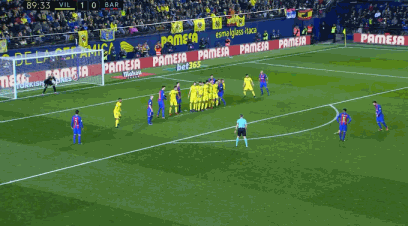 三天前的1月9日凌晨,西甲第17轮巴塞罗那客场挑战比利亚雷亚尔,眼看比赛就要结束了,第90分钟,巴萨前场禁区前沿的任意球机会,梅西主罚直接打门,皮球直飞球门左上角,1-1,巴萨最后时刻扳平比分!