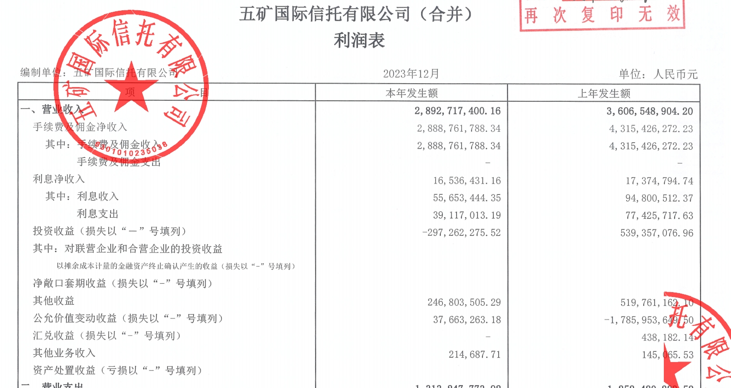 近期因降薪裁员传闻被顶在风口浪尖上的五矿国际信托有限公司(下称:五矿信托)2023年未经审计的财务数据出了,业绩果然不好看。
