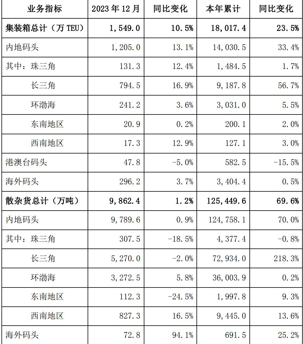 招商港口:2023年累计集装箱总计1.8亿TEU,同比增长23.5%