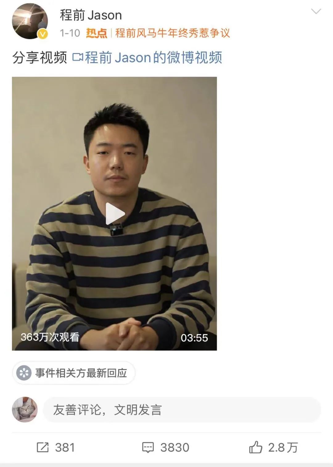 至于程前一遍一遍地道歉,近乎谄媚地向周鸿祎示好,无一不强化了这种“弱”。