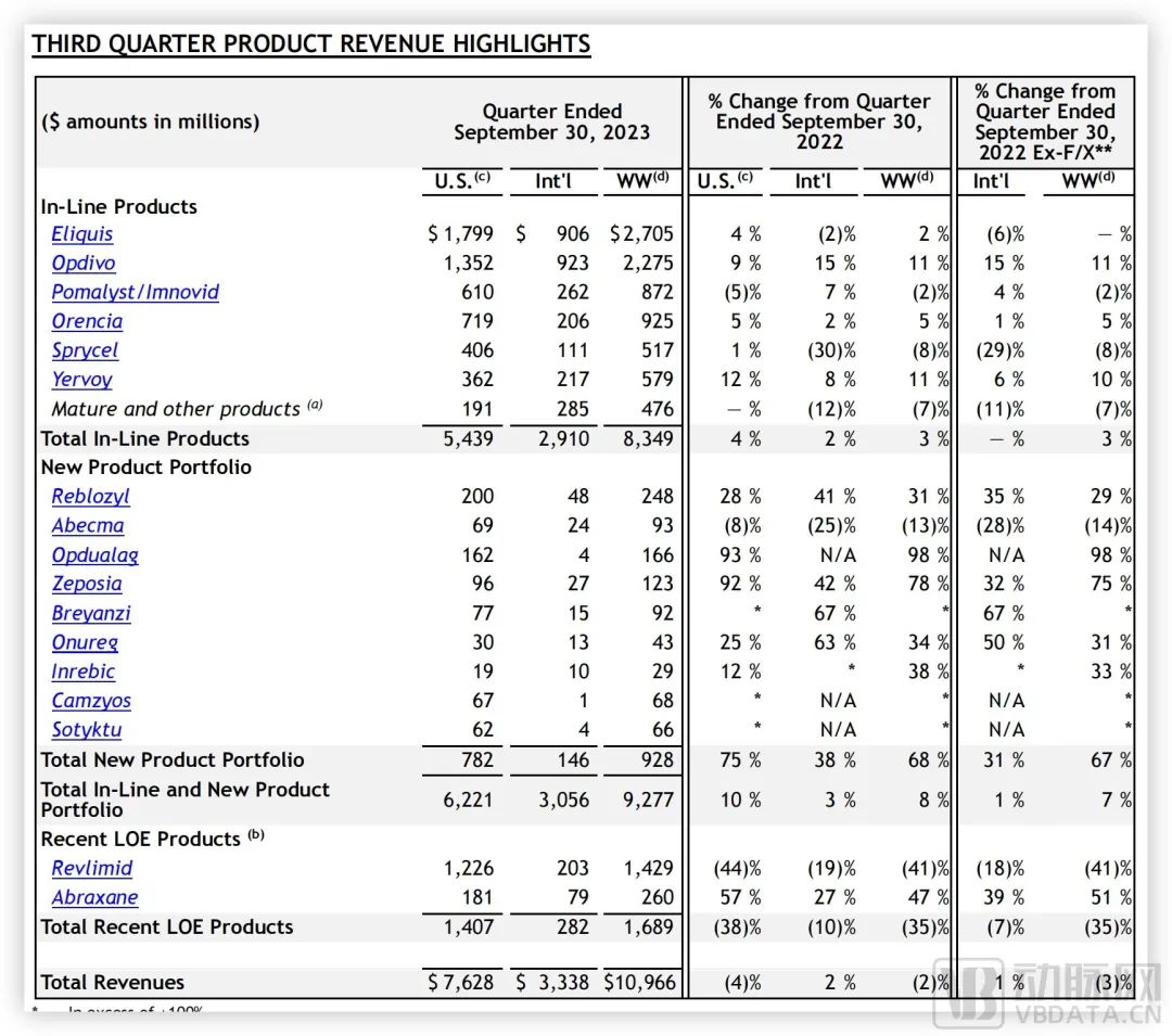 BMS似乎决心更大,一出手便是140亿美元,有种后发先至的意味。从财报中,我们不难发现其中缘由。据2023年Q3的财报数据,BMS当季营收约110亿美元,同比降低2%,而这已经是BMS从2022年Q3~2023年Q3连续第5个季度出现业绩下滑了。