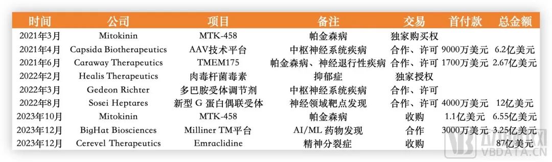 近3年艾伯维在神经领域的布局,数据源自公开信息整理