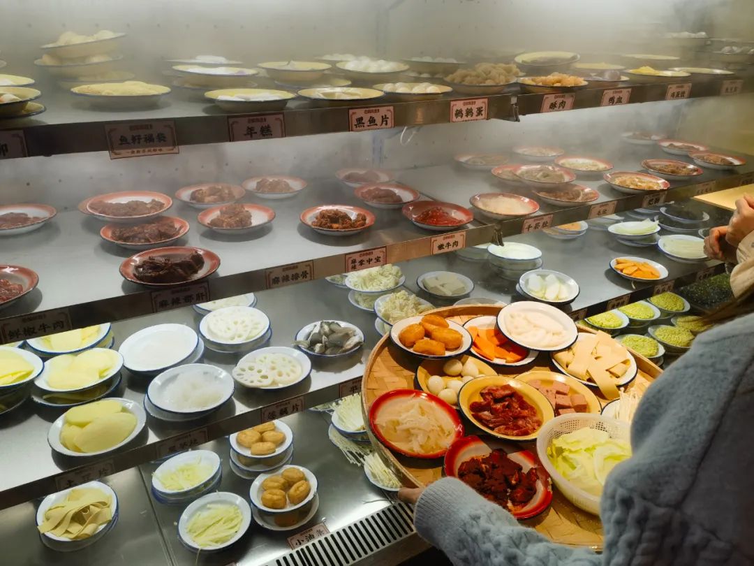 一行三人主要挑了些小盘的菜式,荤素结合,荤菜如牛肉、鹌鹑蛋、毛肚,素菜如笋、海带、土豆片、白菜等等。结账的时候曹晏也傻眼了,“3个人加起来150元,相当于一个人吃了50元”。