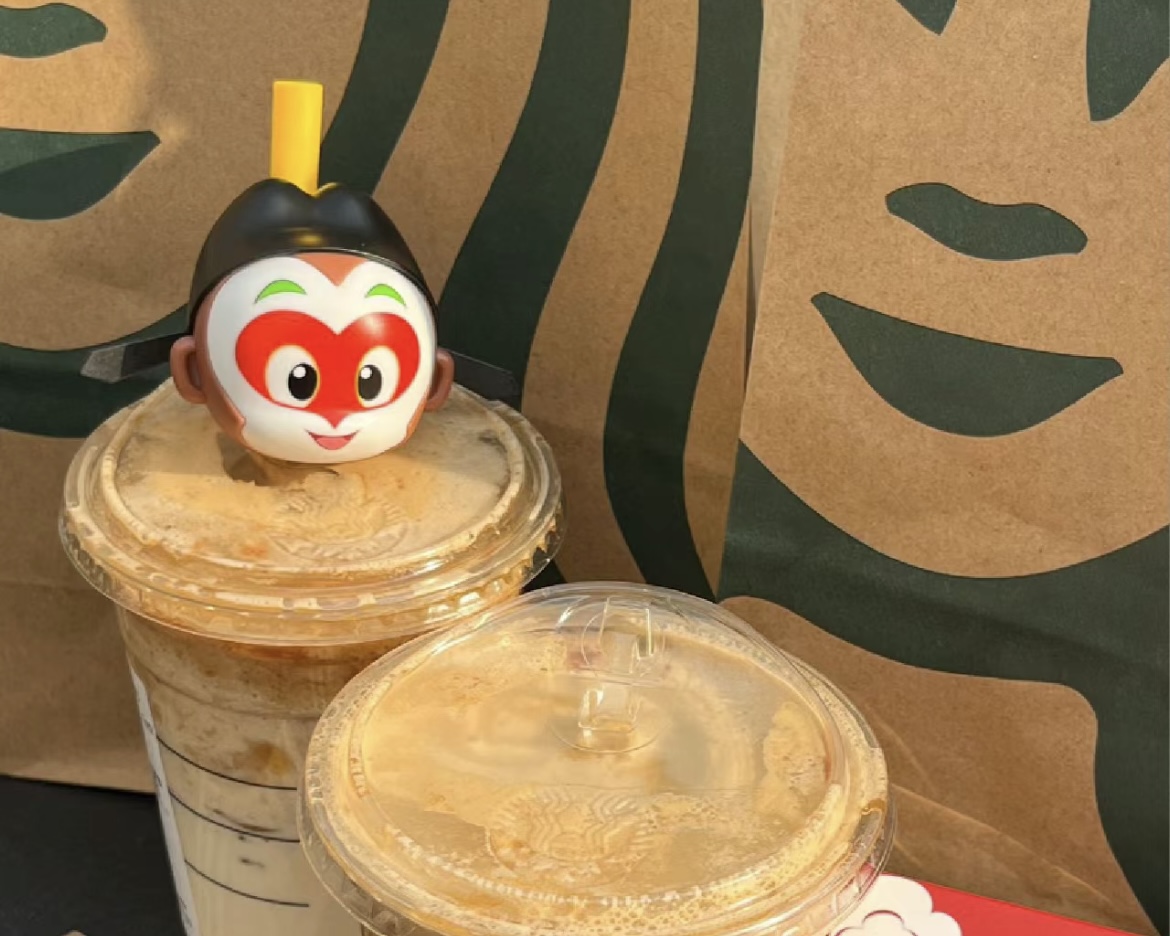 而此前在社交媒体上引起讨论的,除了产品本身,还有星巴克与国漫《大闹天宫》IP的联名。星巴克方面称,它从饮品研发创意、饮品制作、外卖配送以及产品周边与齐天大圣孙悟空进行了全方位的形象结合。其中的一款周边为齐天大圣限定的吸管,可以边搅拌边喝咖啡。